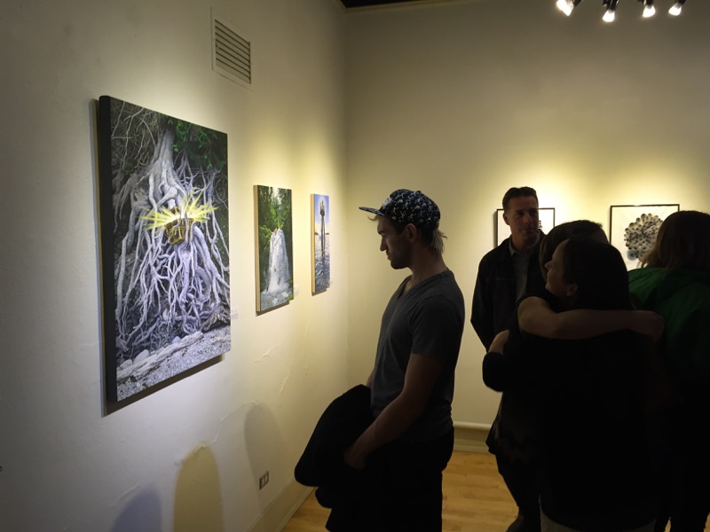 What these artists share, beyond skill, inventiveness, and an obvious shared love of art, is a kind of post-modernist surrealistic mindset. Mangan’s whiskey barrels tumbling over a cold waterfall and his luminous treasure chest caught up in tree roots are like modern day René Magrittes; and Roy’s “The Siege of Syracuse” is like a Salvador Dali painting if Dali had expended more energy on art and less on performance.