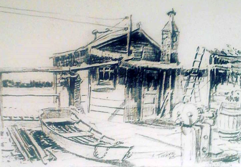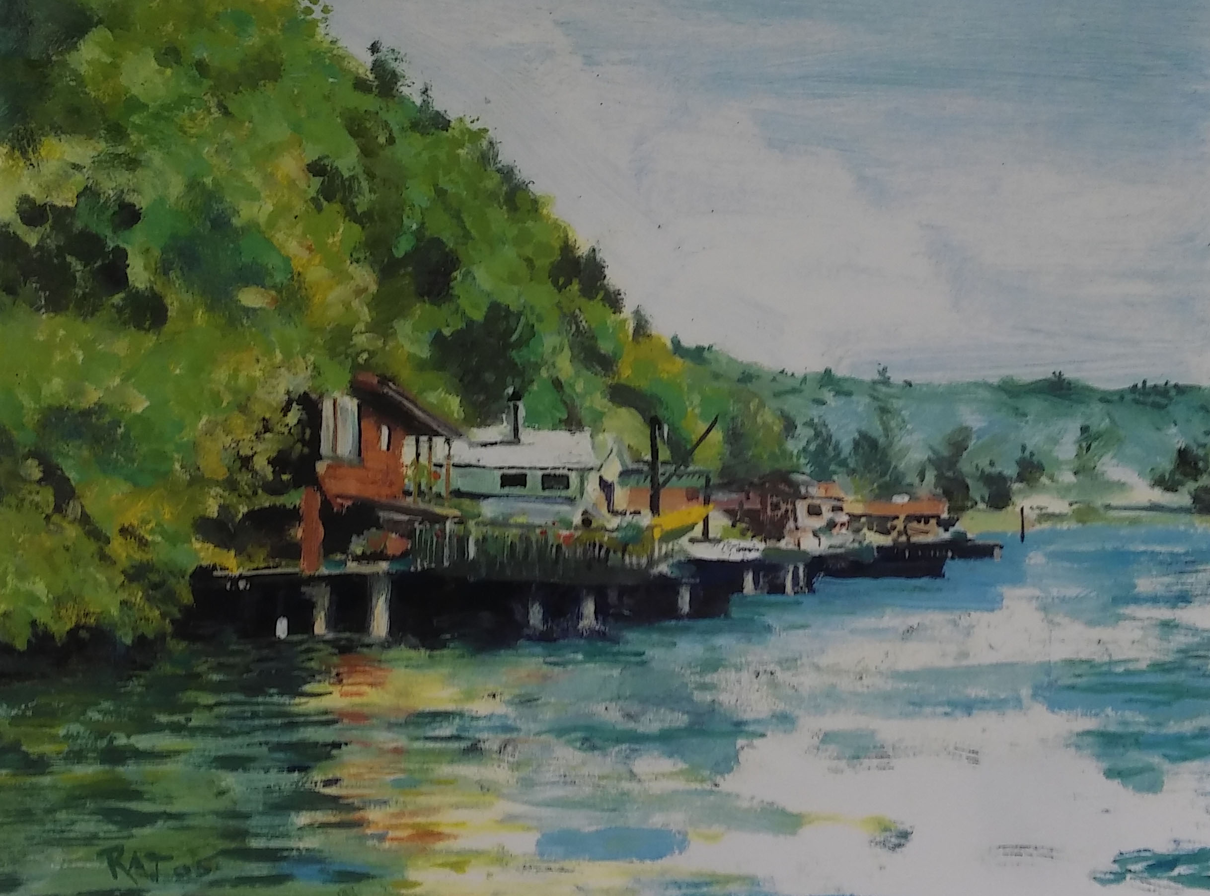 “For some time I have been acutely aware of urban noise. I even went to the Arizona desert searching for quiet. Much of the white series is my attempt at quiet. The Salmon Beach paintings are as a result of working up images for our annual rowboat race posters. I have had one shack or another at Salmon Beach for 56 years and the ever-changing land, sea, and sky compositions are part of me. This motif can be seen in both the realistic work & the White Series. It’s all about light, some inner, some outer.” – R.A.Turner
